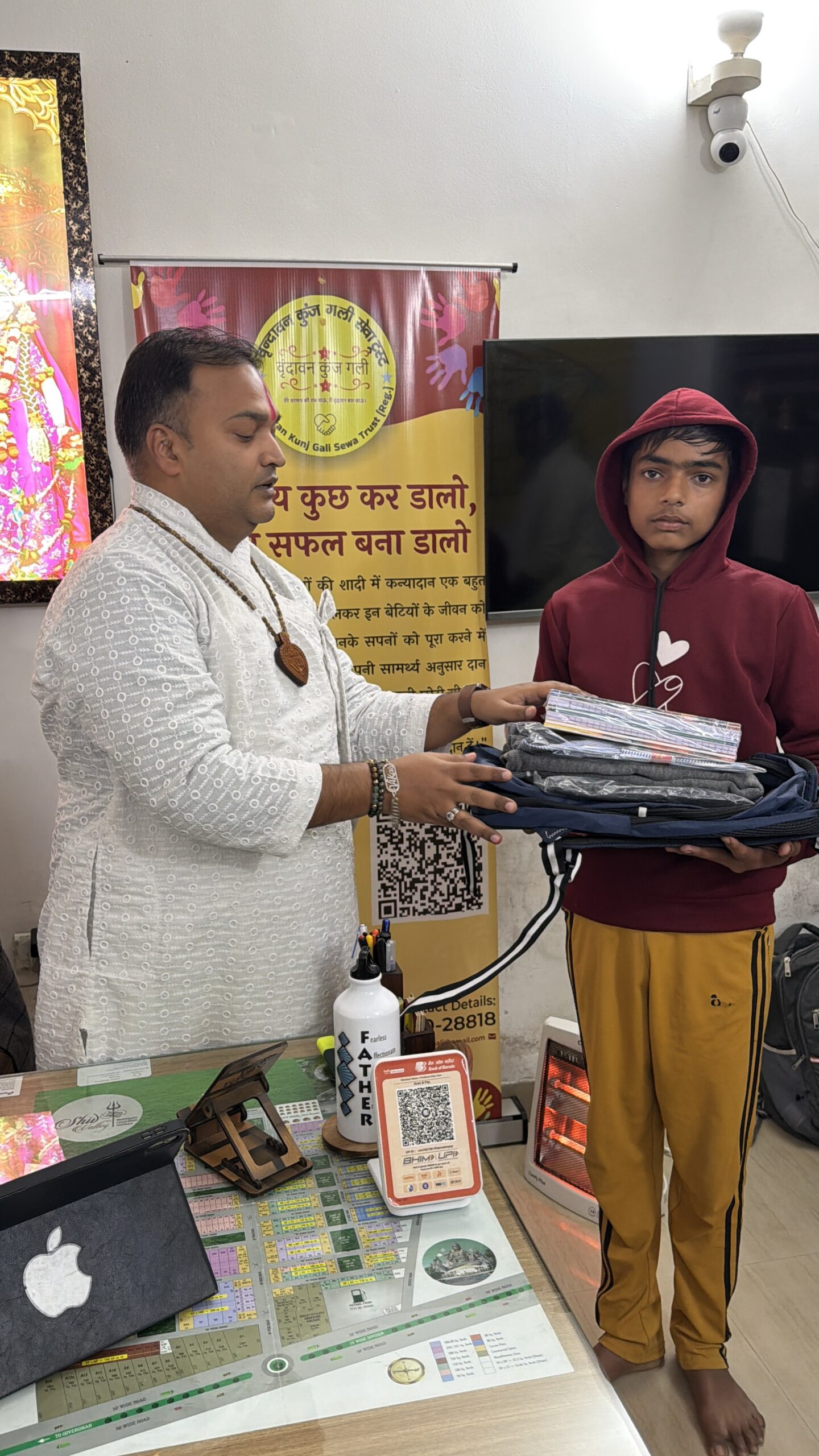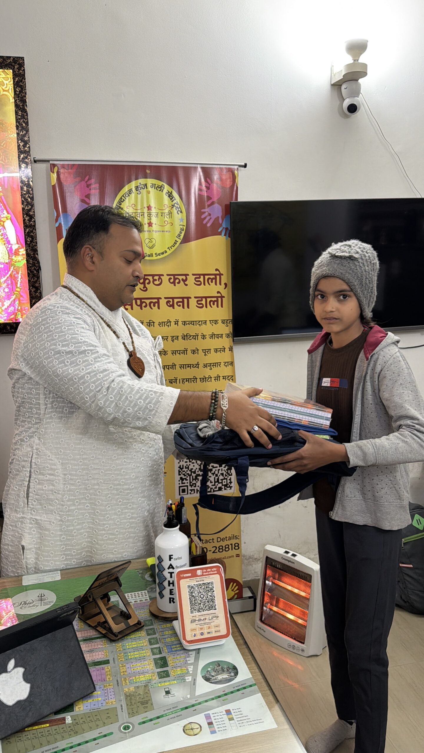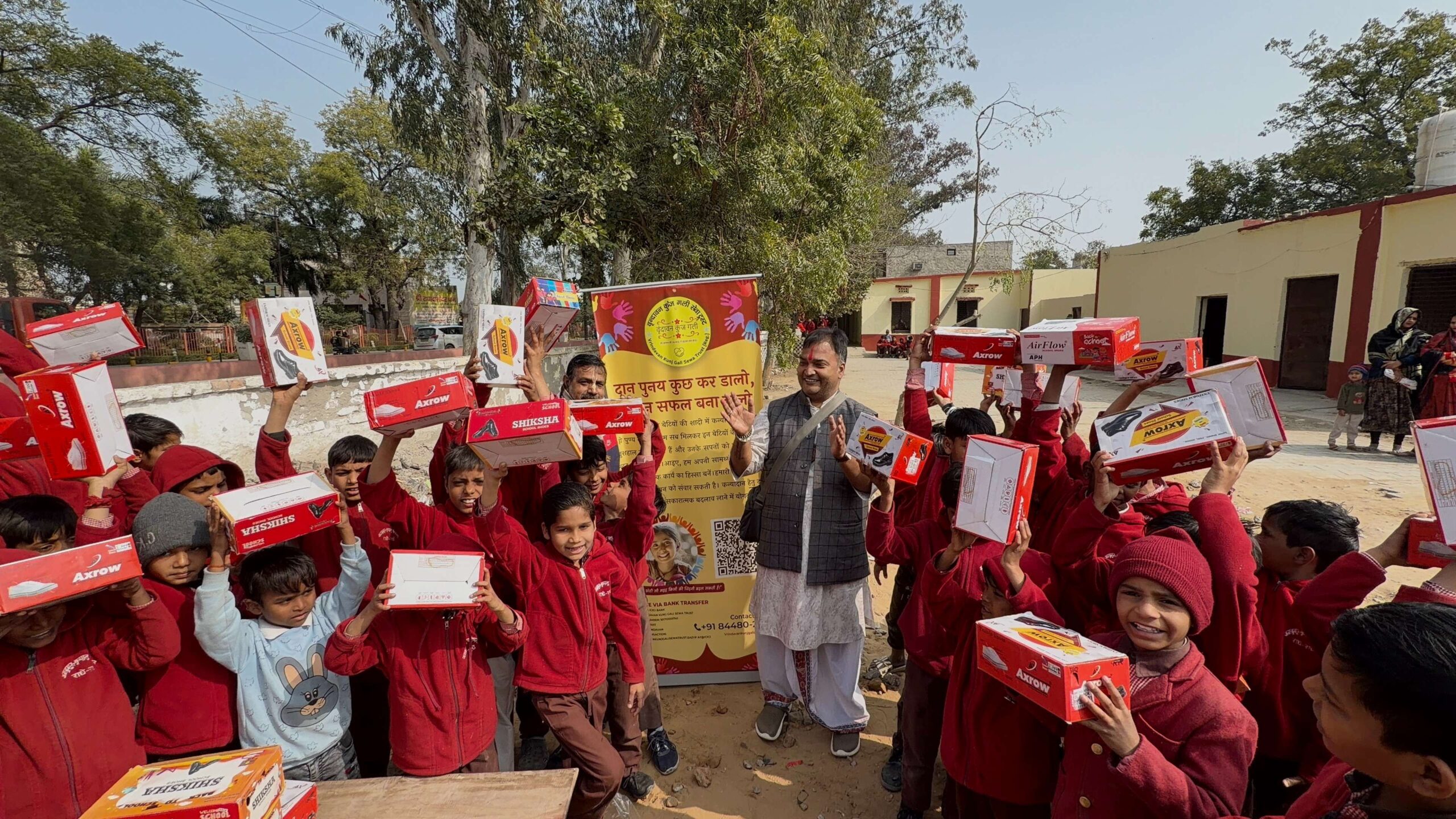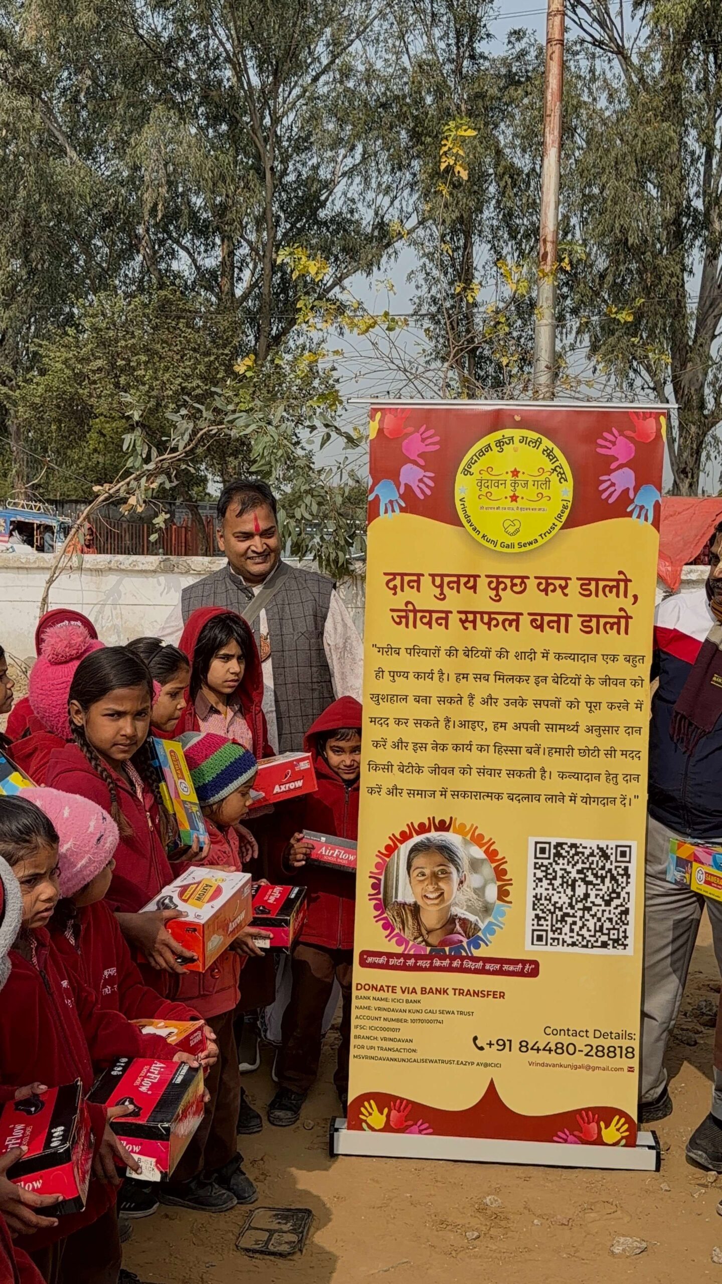 वृंदावन कुंज गली सेवा ट्रस्ट के माध्यम से उन्हें स्कूल बैग, सर्दियों की ड्रेस और पढ़ाई का आवश्यक सामान सप्रेम प्रदान किया गया 🙏।